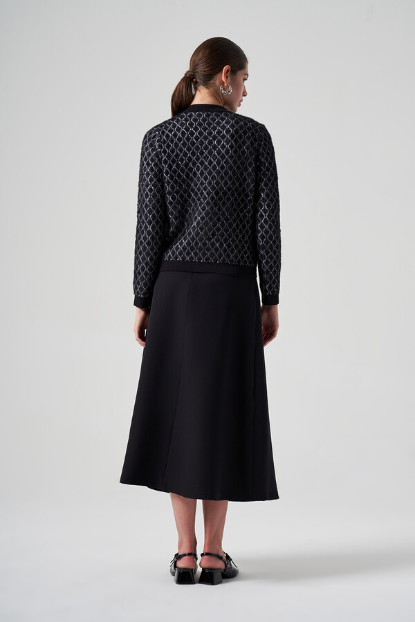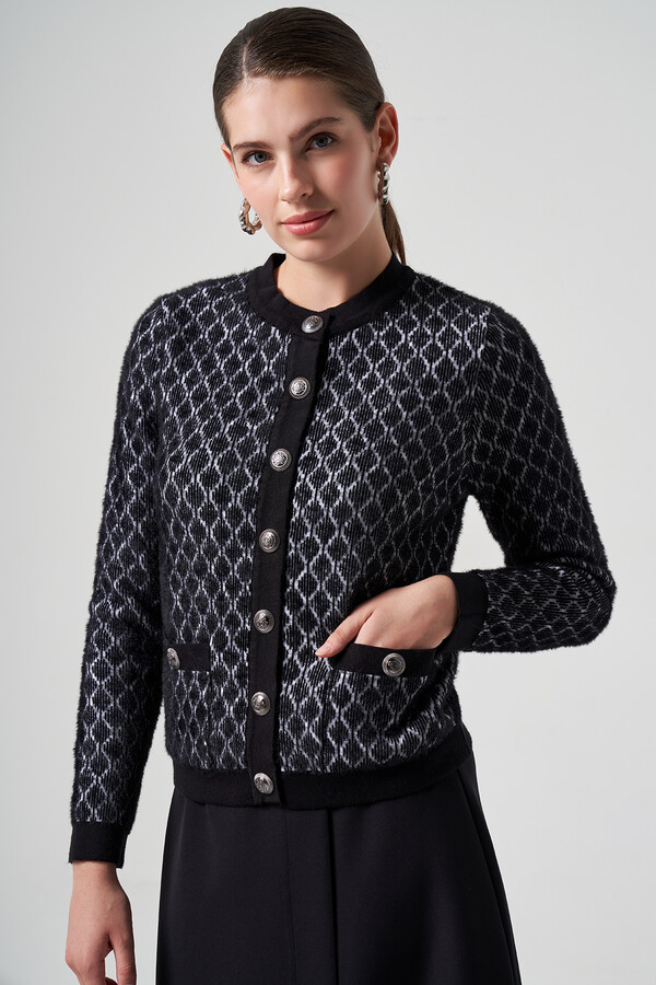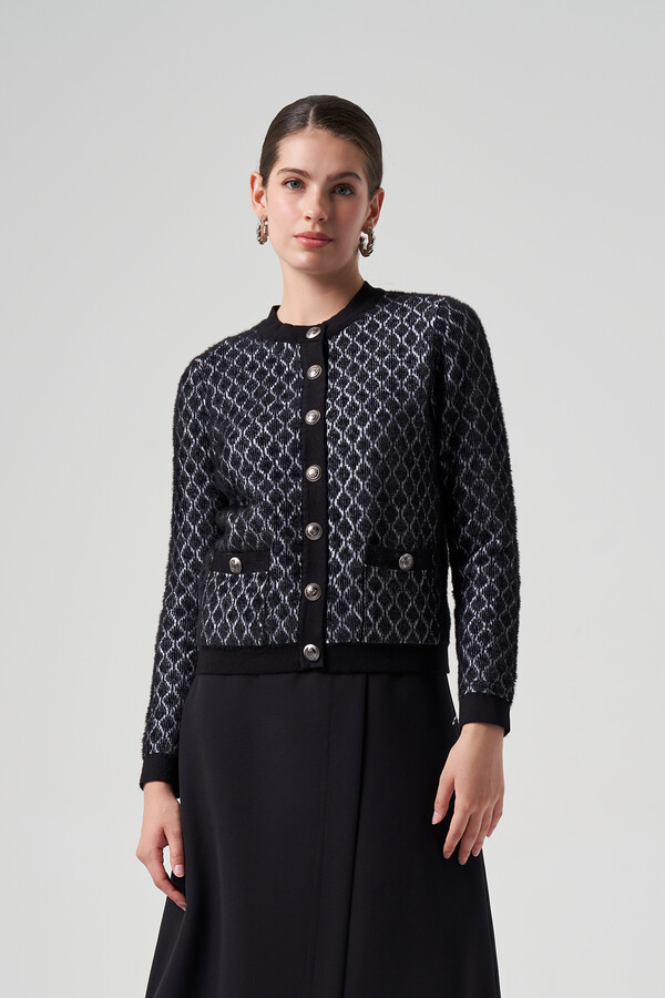 Nuss Knit Button Detail Short Cardigan 7002 Black-Ecru