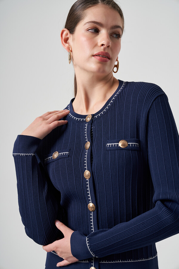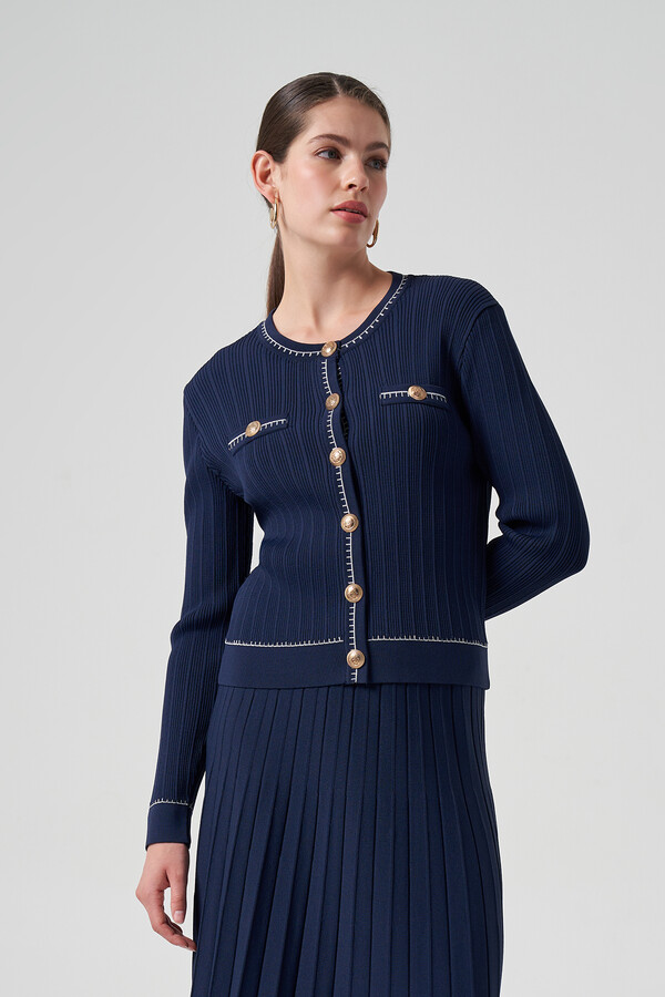 The Nuss Mercerized Knit Button Detail Short Cardigan 1115 is a versatile piece that can be styled both chic and sporty.