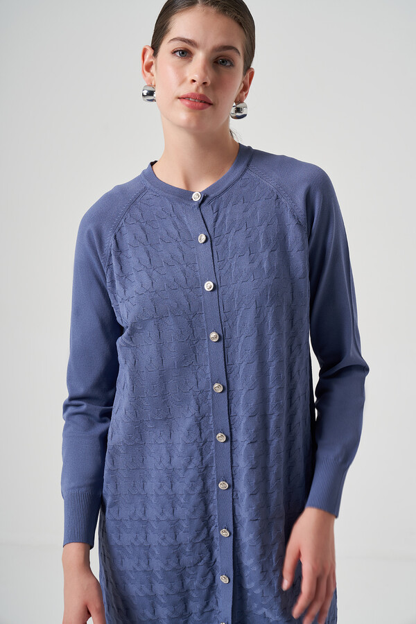 Nuss Mercerized Knit Houndstooth Cardigan 1111 Indigo