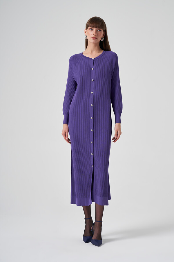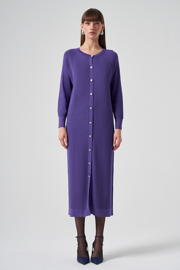 Nuss Mercerized Striped Detail Long Cardigan 1110 Lilac