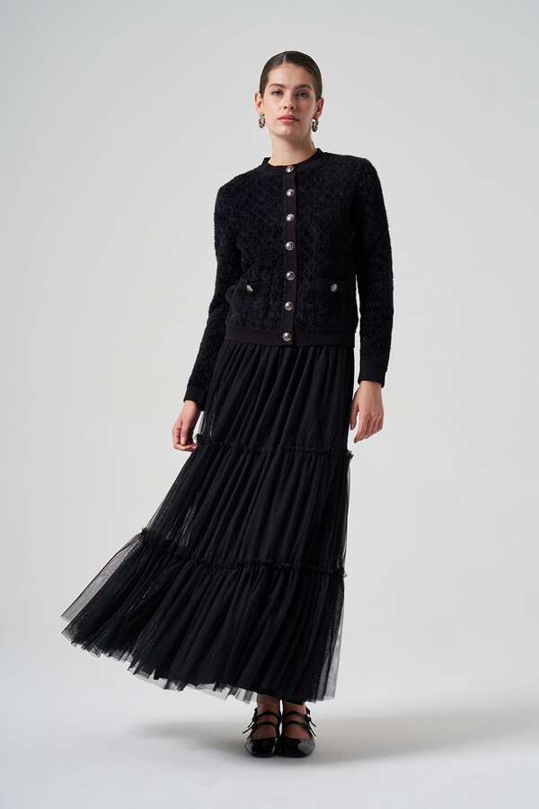 Nuss Triko Düğme Detay Kısa Hırka 7001 Siyah