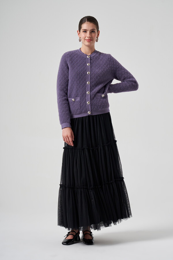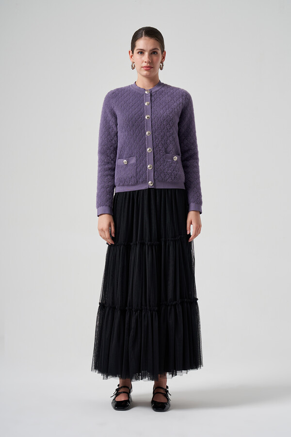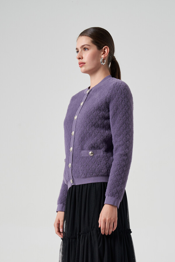 Nuss Triko Düğme Detay Kısa Hırka 7001 Violet