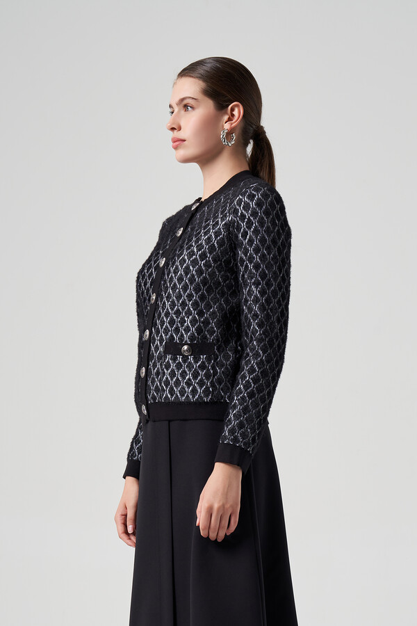 Nuss Triko Düğme Detay Kısa Hırka 7002 Siyah-Ekru