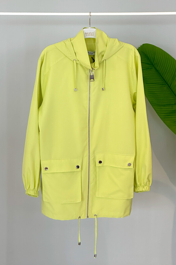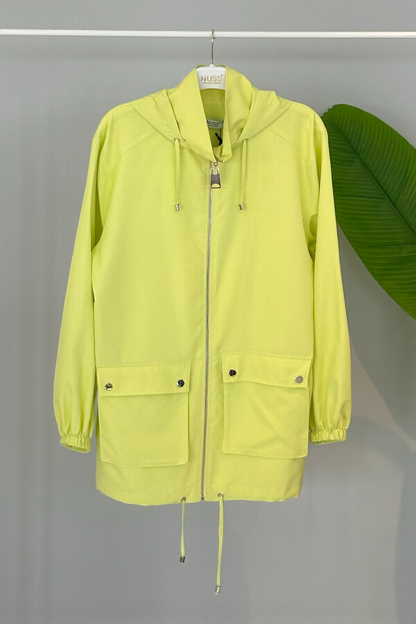 Eşsiz rengi ve kumaşı ile Nuss markası tarafından tasarlanan ceket kap şimdi satışta! İster özel günlerde şık kombinlerinizde kullanabilir isterseniz günlük hayatta spor kombinler yapabilirsiniz. Ceketin ön kısmında tam fermuar yer almaktadır. Ayrıca etek ucunda büzmeye yarayan ipi sayesinde istediğiniz şekilde ayarlama yapabilirsiniz. İki adet cebi yer almaktadur ve el bileklerinde lastiği mevcuttur. Kapüşonlu bir model olup bahar aylarında da rahatlıkla kullanabilirsiniz. İster yağmurluk ister giy çık ceket olarak kullanabilirsiniz. %100 polyester