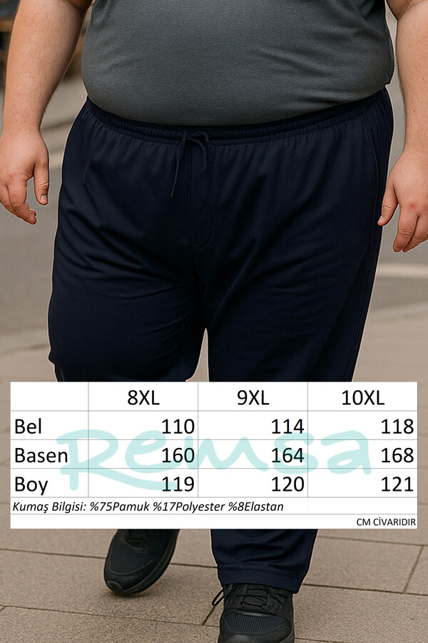 Özel Üretim Büyük Beden Ekstra Battal Pamuk Dokulu Erkek Eşofman Altı 3704 Lacivert