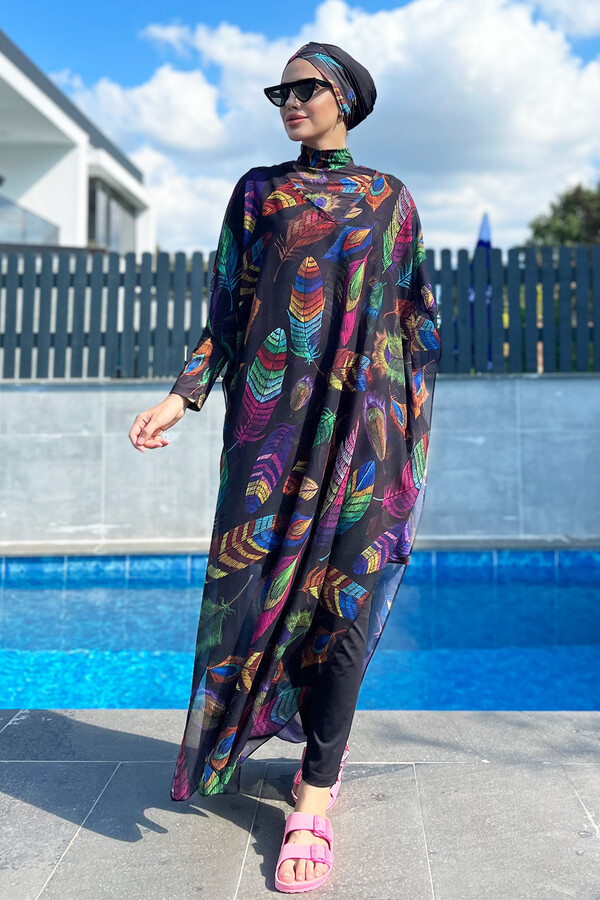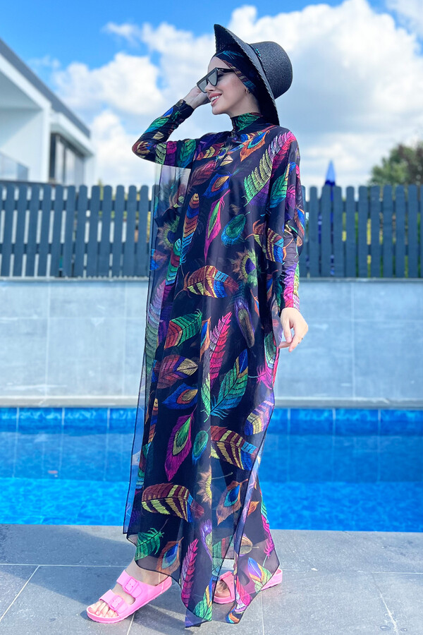 Remsa Mayo Tesettür Mayo Üzerine Desenli Tek Kaftan Pareo 430-221 Tuğba