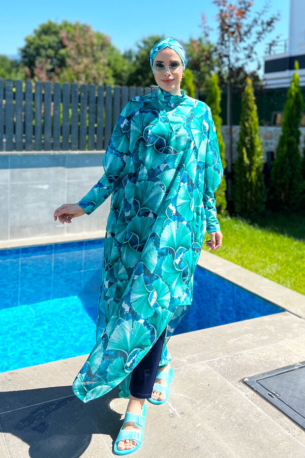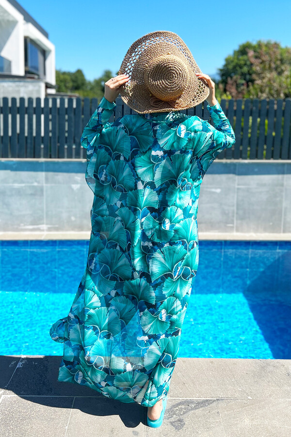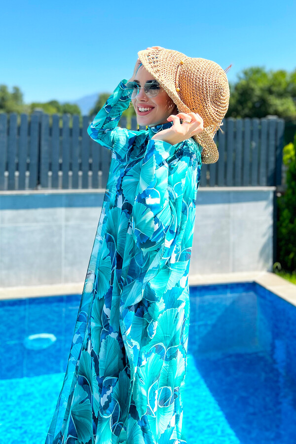 Yeşilin mükemmel halini bu ürün üzerinde oluşturan Remsa Mayo markamız, tek parça halinde gönderim sağlamaktadır. Desenli ve kaftan şeklindeki Hawaii isimli ürünümüz oldukça revaçta. Şifon kumaşın asaleti ve su tutmayan yapısıyla plajlarda sıklıkla tercih ediliyor. V yaka ve dökümlü uzun şekliyle çok şık bir duruş sergiler.