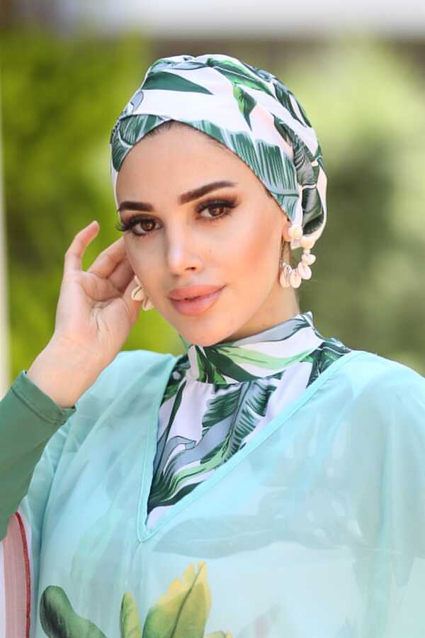 Remsa Mayo kadın yaz koleksiyonu tamamlayıcı ürünlerden olan yeşil yaprak desenli tesettür bonesi ile sizde diğer mayolarınızla farklı kombinler oluşturabilirsiniz. Ürün paket içeriği tek parça boneden oluşmaktadır. Mayo takımını satın almak istiyorsanız diğer sayfalarımıza göz atabilirsiniz. Bone kumaşı likralı olması sebebiyle kolay bir şekilde giyme çıkartma işlemini gerçekleştirebilirsiniz. Bonenin geniş iç hacmi sayesinde saçlarınızı sıkmayacak olan ürünü ense kısmından bağlayarak sağlamlaştırıp kullanabilirsiniz. Siz de harika kombinler yapmak istiyorsanız remsamayo.com üzerinden hemen sipariş verin.