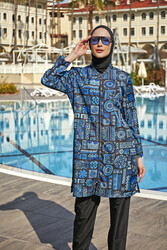 Remsa Paraşüt Tam Kapalı Tesettür Mayo R4607 Ümran, yazın enerjisini ve doğanın canlılığını üzerinizde taşımanızı sağlayacak özel bir tasarıma sahip. Mavi tonlarının hâkim olduğu etnik desenlerle süslenmiş bu mayo, hem şıklığı hem de konforu bir arada sunuyor. Hafif ve su itici paraşüt kumaşı sayesinde suda rahatça hareket etmenizi sağlar ve hızlı kuruma özelliğiyle gün boyu konfor sunar.