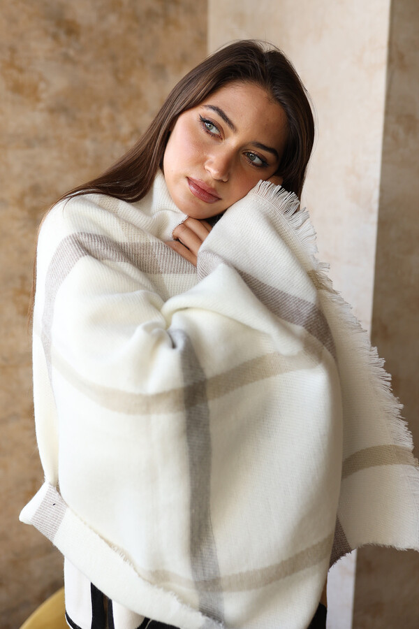 Elegance meets warmth! The Square Patterned Scarf Shoulder Shawl, in ecru color and with its warming feature, will become your favorite for every season. This special shawl is completed with fringes at the ends, offering you an elegant look.
