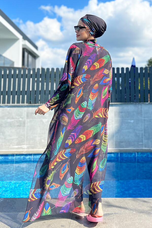 Remsa Swimwear Patterned One Caftan Cover-up on Hijab Swimsuit 430-221 Tuğba