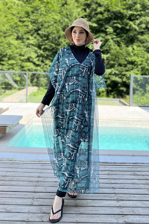 Bu tropikal desenli kaftan pareo, yaz stilinizi tamamlamak için mükemmel bir tercihtir. Hem havuz hem de deniz kenarında rahatlıkla kullanabileceğiniz bu parça, hafif ve nefes alabilen kumaşıyla konfor sunar. Standart beden olması sayesinde her vücut tipine uyum sağlar. Uzunluğu ve genişliği ile vücudu nazikçe sararak şıklığı garantiler. Desenlerinde yer alan yeşil tonlar, doğayla bütünleşmiş bir görünüm yaratır ve ferahlık hissi verir. Hassas yapısı nedeniyle çanta, aksesuar veya takılarla kullanırken dikkat edilmesi önemlidir. Mayo takımının ayrıca satıldığını belirtmek isteriz. Bu kaftan pareo, yazın keyfini çıkarırken tarzınızı yansıtmanın harika bir yoludur.