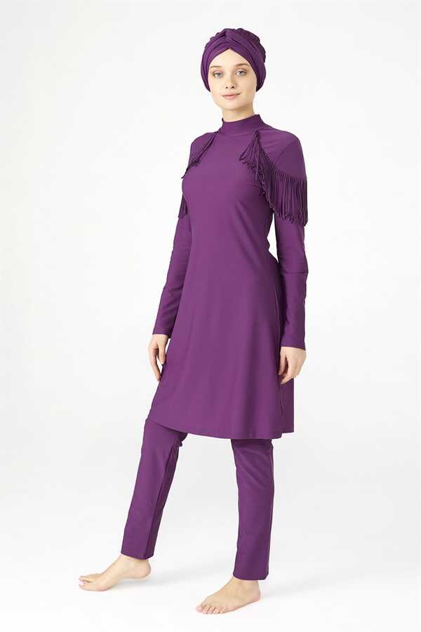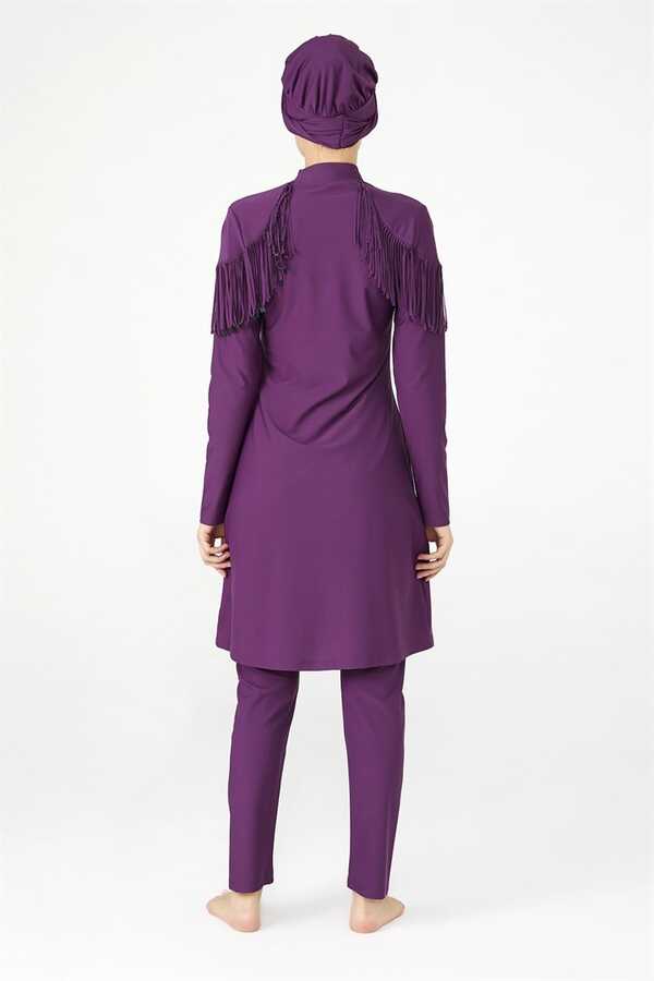 Tasarım Likralı Tam Kapalı Tesettür Mayo Püskül 4105 MOR