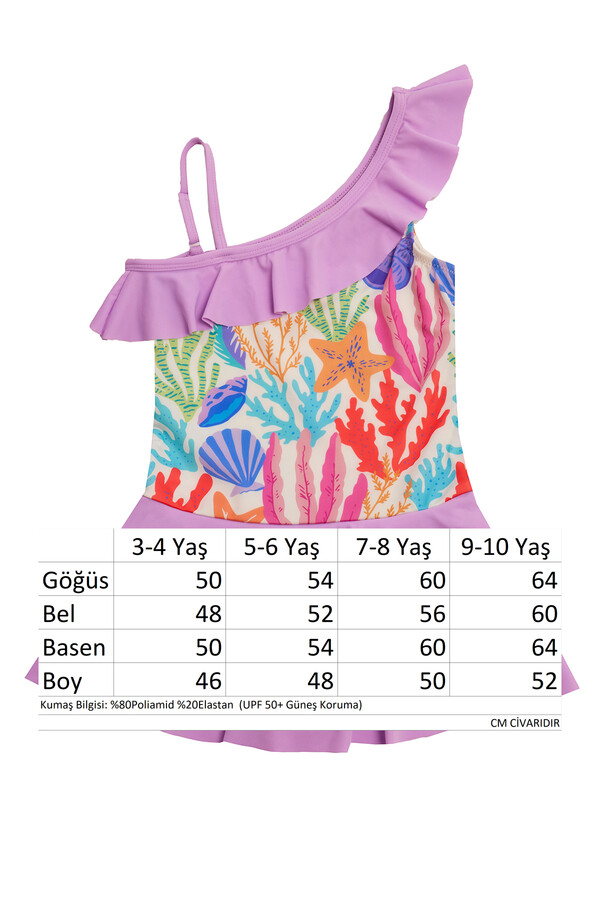 UV Korumalı Askılı Elbise Mayo Kız Çocuk Yüzücü Mayo 5225 Lila