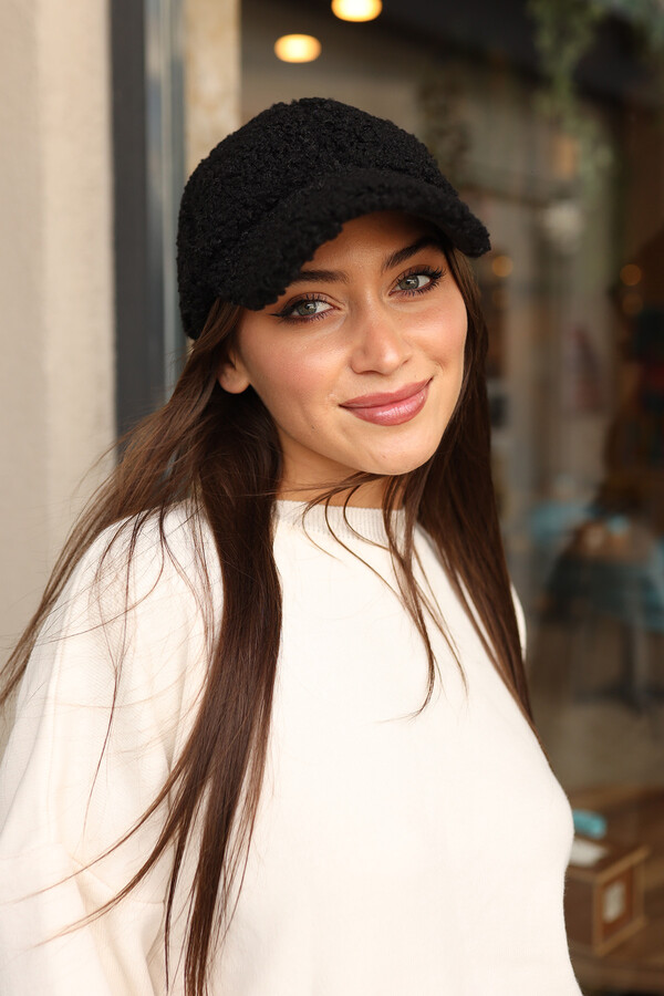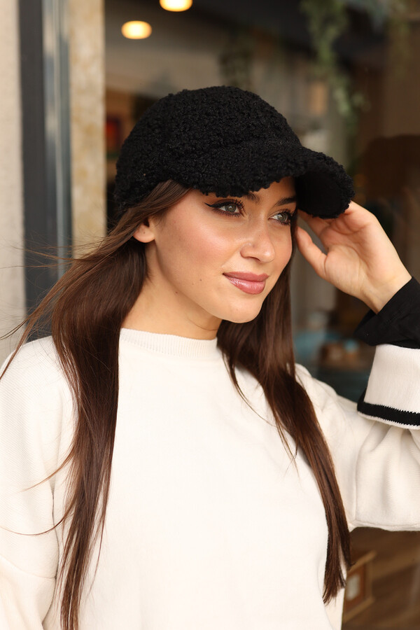 Stay effortlessly chic with the Women's Curly Plush Cap Hat RKŞ-07 in Black. Designed with a unique curly plush texture, this cap combines style and comfort, making it a standout accessory for cooler days. The classic black color offers timeless versatility, easily pairing with casual or elegant outfits. Featuring a structured brim and a cozy fit, it provides warmth while maintaining a polished and trendy look. Perfect for any occasion, this cap is the ultimate blend of practicality and modern design for your winter wardrobe.