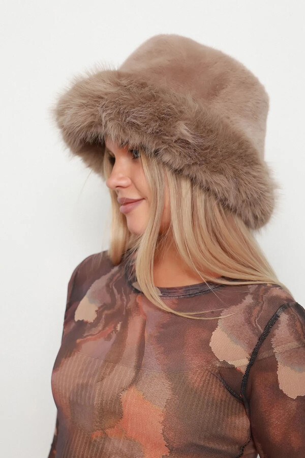 Women's Plush Bucket Hat RKŞ-14 Mink