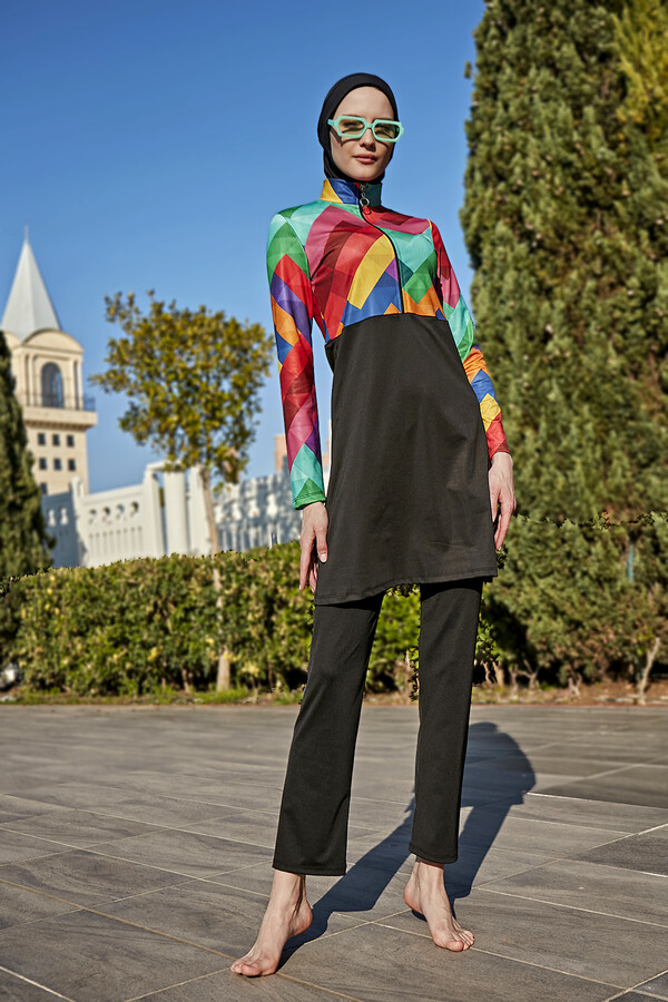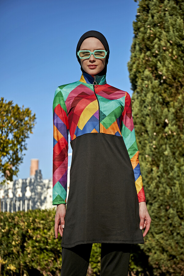 Yarım Fermuarlı Likralı Tam Kapalı Mayo R4503 Tetris