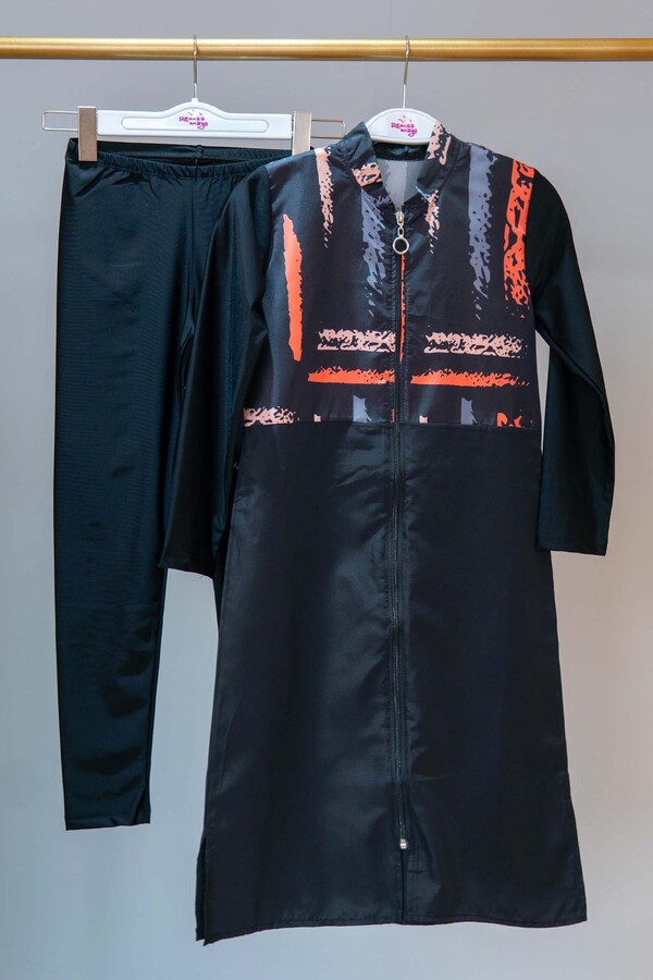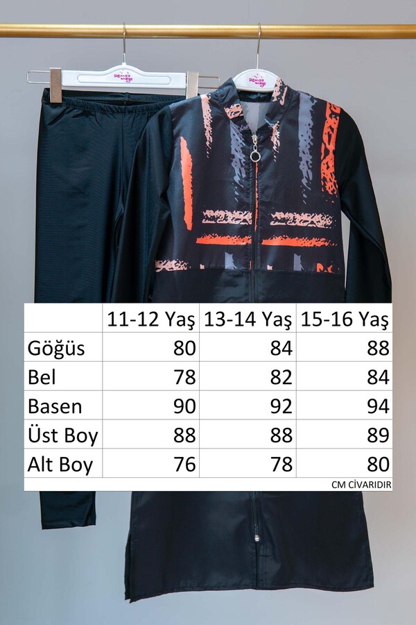 The Youth Full Cover Hijab Swimsuit is specially designed for young girls, featuring energetic orange stripe details that enhance your style. The orange stripes on the upper part provide a youthful and dynamic look, while the body is made from water-repellent parachute swimsuit fabric. The sleeves and leggings are crafted from flexible Lycra swimsuit fabric, ensuring a comfortable swimming experience and freedom of movement.